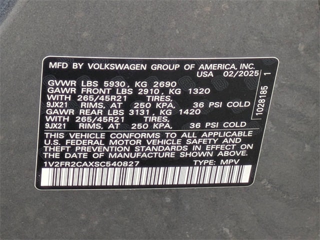 2025 Volkswagen Atlas 2.0T SEL Premium R-Line Factory MSRP: $56,136